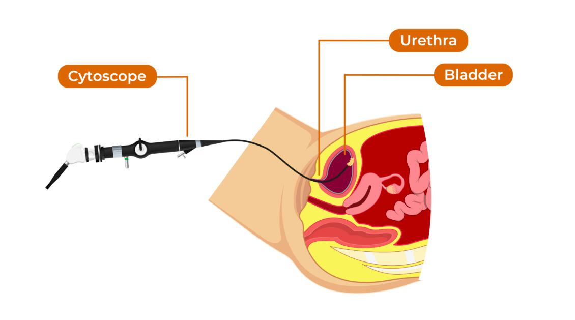 - Cystoscopy: A thin tube with a camera is inserted into the bladder to visually inspect the lining.