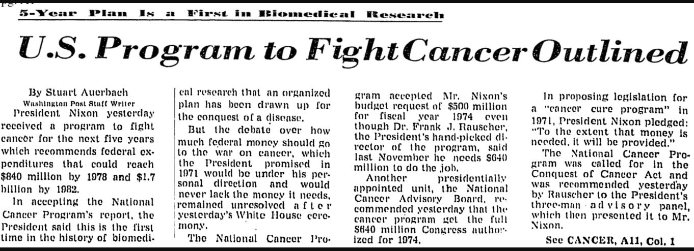 When Did the United States Declare a “War on Cancer” by Passing the National Cancer Act?